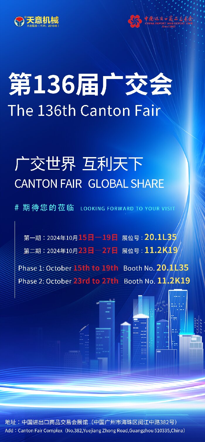 第136屆廣交會的日益臨近,天意機械已經(jīng)整裝待發(fā),期待在展會期間與全球客戶探討合作機會,推動雙方共同發(fā)展。未來,天意機械將繼續(xù)秉承“質(zhì)量第一、客戶至上”的理念,不斷提升自身的技術(shù)實力和市場競爭力,為全球客戶提供更加優(yōu)質(zhì)的產(chǎn)品和服務(wù)。